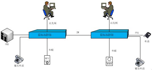 圖1 IDM-MINI8綜合業務復用設備典型應用(E1傳輸)