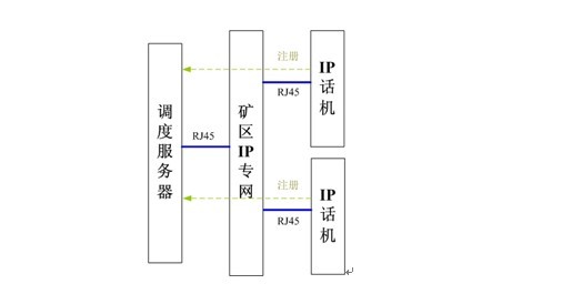 IP話機直接接入到礦區的IP網絡,即可通過IP網絡注冊到調度服務器,并被分配分機號碼。